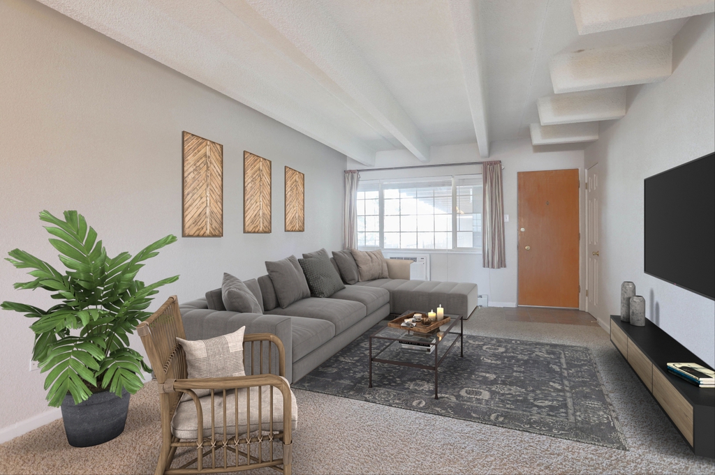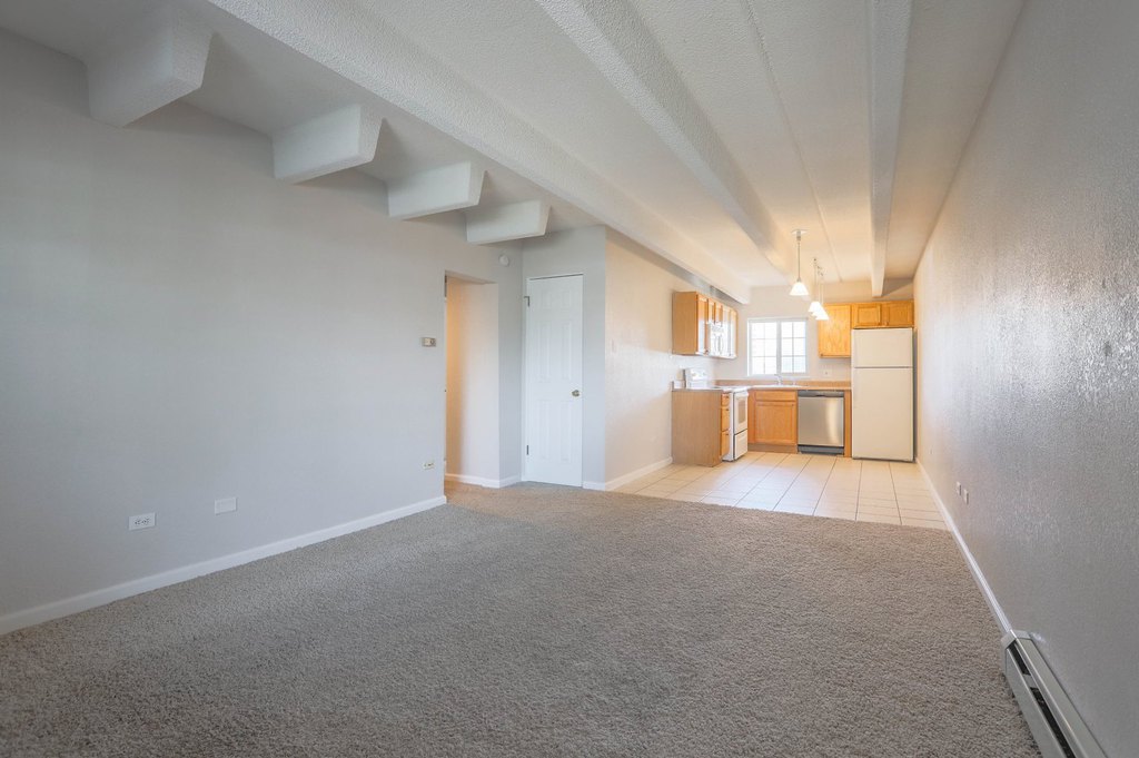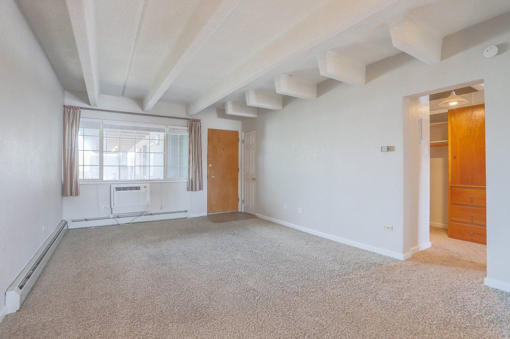 Unit #302 is a top (3rd) floor unit. It offers 602 square feet of living space, framed by large windows and tons of closet space. The open kitchen - dining - living room floorplan features new paint and carpet. Tucked in the back of the floorplan, the large bedroom is flanked by 3 closets, as well as the bathroom with full bathtub.